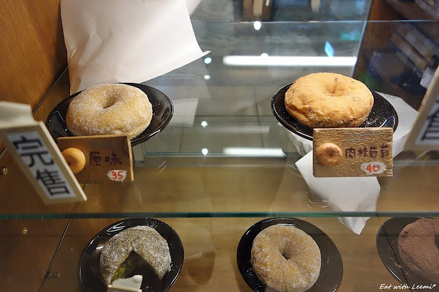 甜甜圈可內用可外帶,選擇內用的話有一杯飲料的低消限制,Haritts的甜甜圈口味很多種,但每天只會固定供應其中幾種,有興趣可以上粉絲團看口味輪班表,這天的是原味、肉桂葡萄、奶油起士、芝麻蜂蜜、抹茶紅豆、柑橘、巧克力這七種口味,價格在35到60元間,目前每人限購3個甜甜圈,比前幾天在網上看到限購5個的數量更低了,應該是有根據營業狀況調整過。