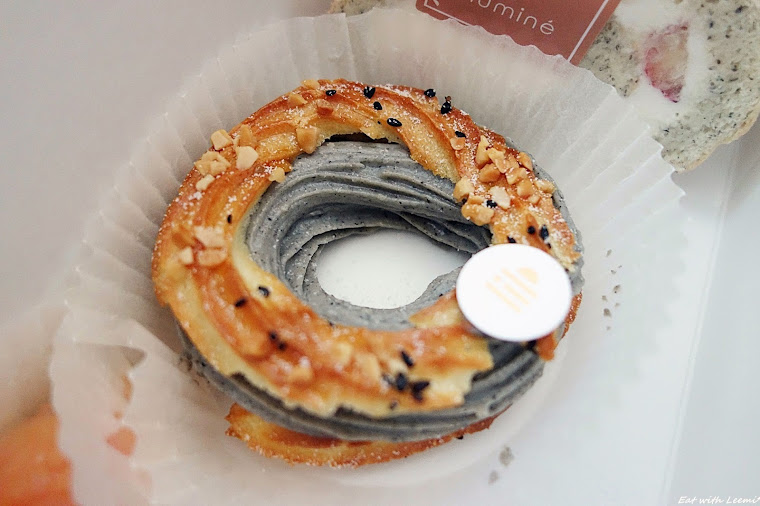 三款之中最喜歡的是芝麻布列斯特泡芙,餡料比例調和妥當而成功展示出黑芝麻的濃厚風味感,口感也頗滑順,泡芙圈有點細所以感覺單薄了些,尤其卡牌底下的部分幾乎快斷了。