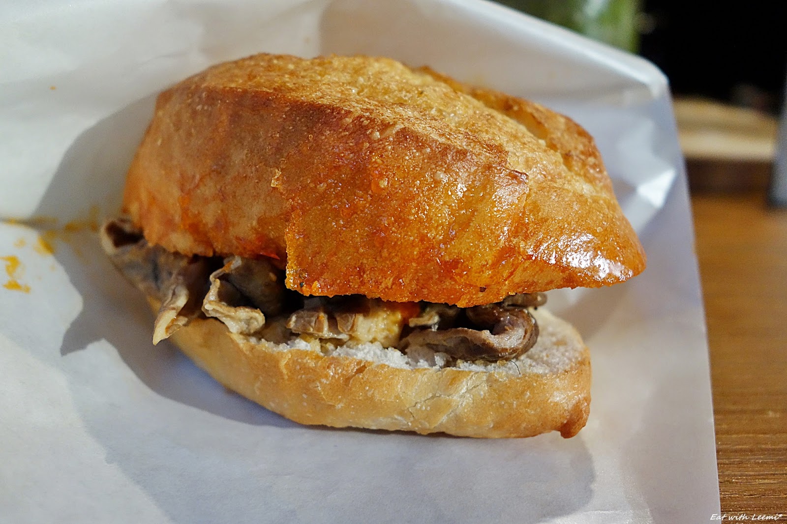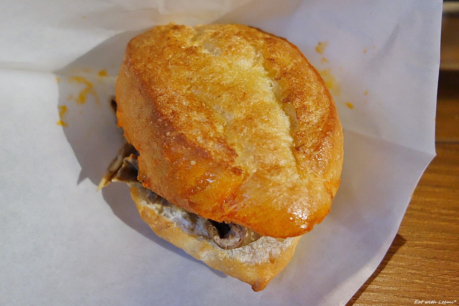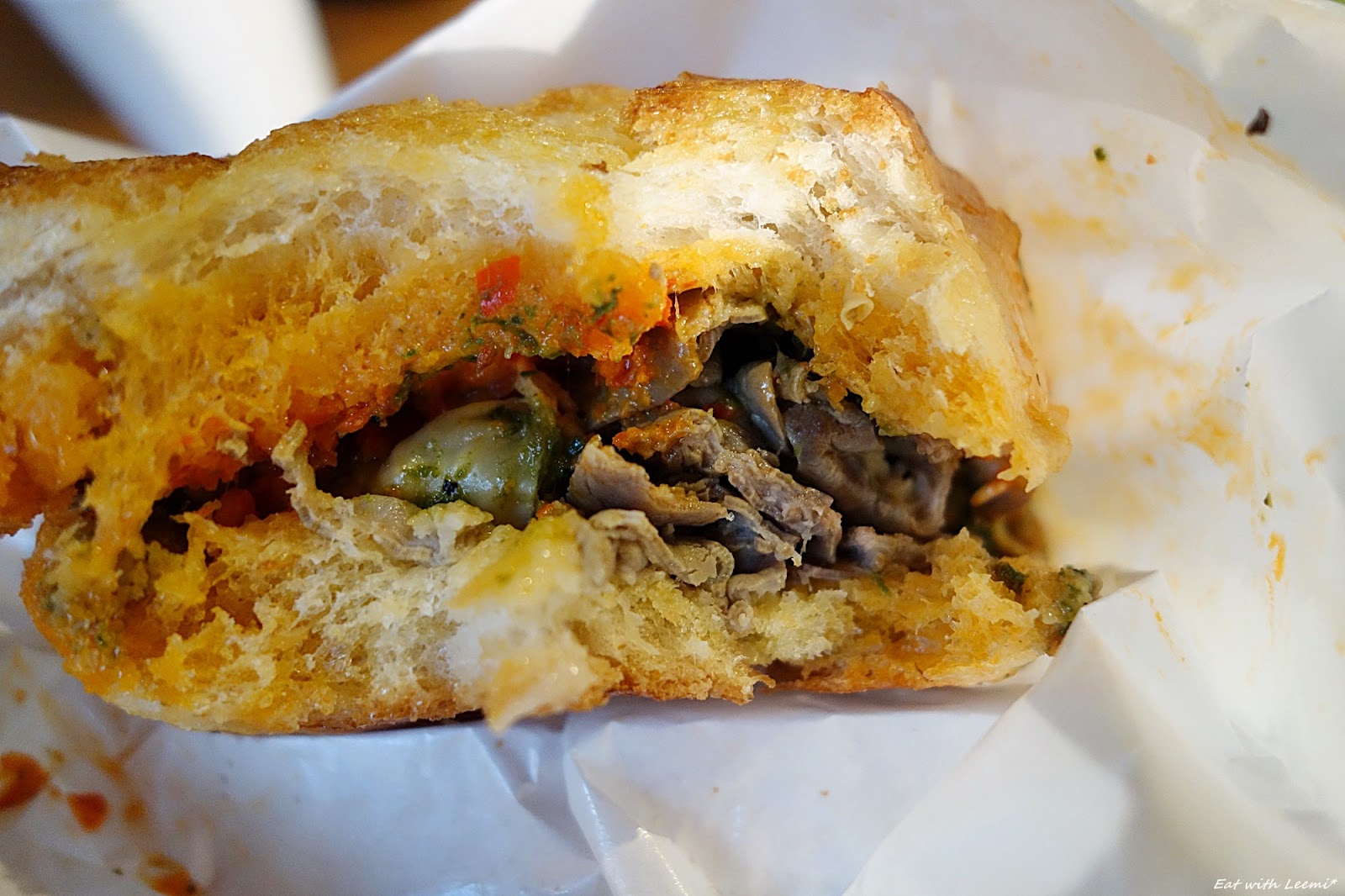 不過這牛肚包裡夾了根疑似毛的東西,還好是在靠近外緣的地方,翻開麵包想拍照時就很容易發現了,整根抽出來才發現可能是5公分左右的毛髮,不過取出告訴店家時沒感覺對方有什麼動作,即使做做樣子立刻檢查下工作環境也成,相信顧客感覺比較不至於這麼微妙,最後結帳時錢照收,店家也沒有再多說什麼,我是平常就會吃路邊攤的人,也不習慣去凹店家折扣,所以其實整個狀況都是可接受的,但今天我介意比較多的還是「感覺」問題吧, 如果有意打造有點質感的事物,那拿出相對應認真的態度也是必要的。