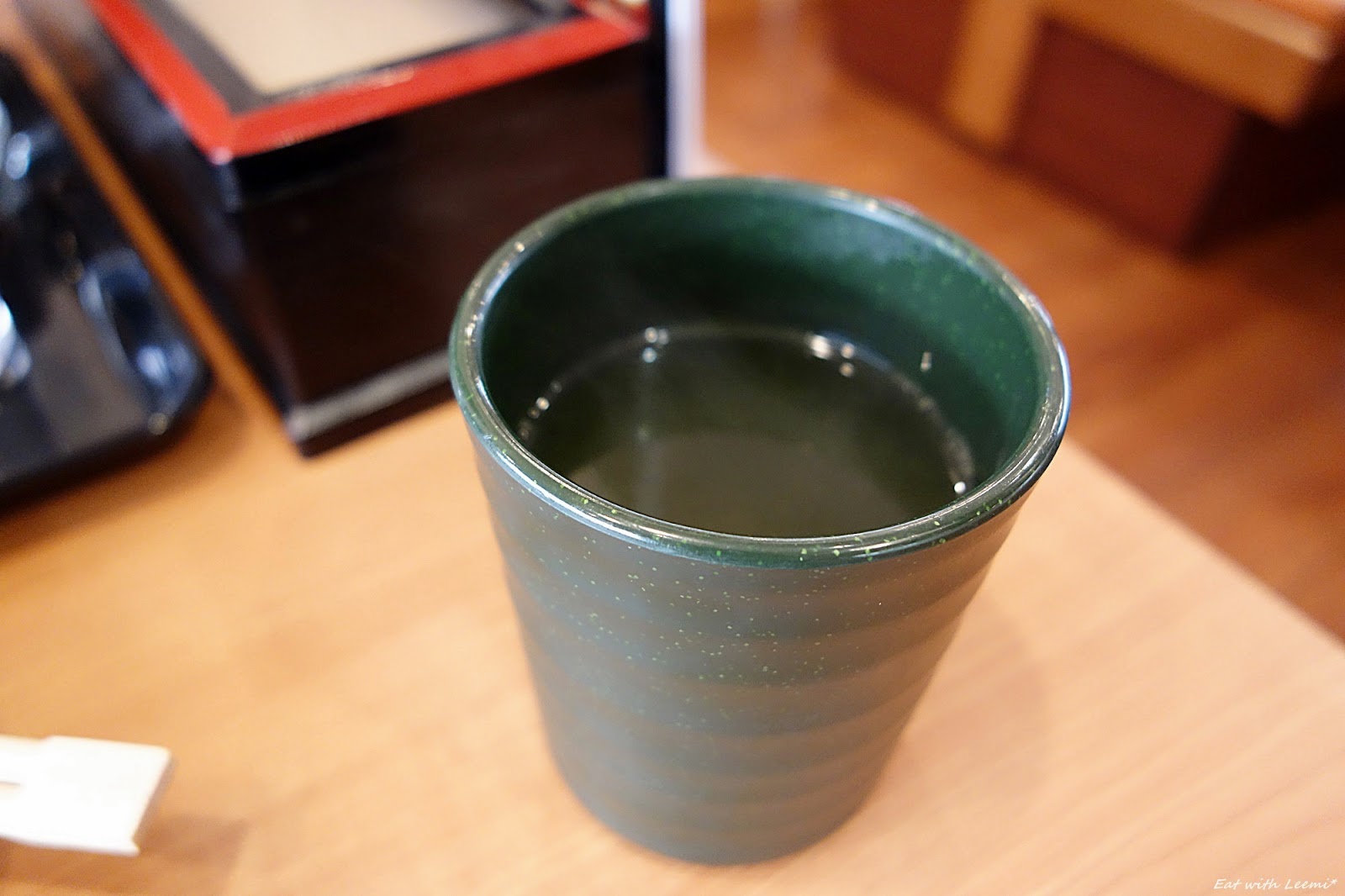 免費提供的熱茶請自己動手泡,藏壽司提供的不是茶包而是茶粉,座位上只有熱開水,冷飲機則是在走道上。