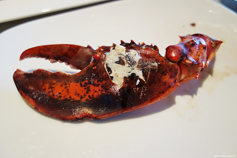 自助吧的餐點拿了幾回後終於到主菜上桌,份量還挺豐盛的,有一隻波士頓活龍蝦加上16盎斯的肋眼牛排再加上配菜,是適合兩人分享的餐點,不過說實話相對於自助吧,這天吃到的主餐反而沒有任何一點驚艷的感覺。龍蝦用焗烤的方式料理,對半剖開的蝦身上頭滿滿白醬,吃起來又鹹又膩,蝦肉也有點粉感,看起來肉很飽滿其實裡頭填滿的都是白醬,肉量其實並不多,唯一讓人欣慰的是波士頓龍蝦有一對肥美的大螯,肉質較好些也比較有吃到整塊蝦肉的爽快感,可惜其中一隻螯的殼開得不好,享用起來覺得沒那麼順手,如果說龍蝦沒有讓人留下太多美好印象,那肋眼牛排就更不怎樣了,肉質尚稱軟嫩但味道普通,上頭淋滿醬汁這點個人也不愛,反而讓人嚐不到肉香味。