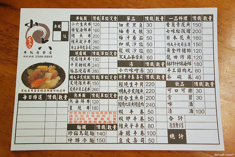 可能去的次數太多所以感受強度有逐漸遞減,但還是有一定吸引力,如果對一兩百元的丼飯要求不會太高、能接受台式作風的日本料理、比較注重實惠划算的感覺、希望菜單生熟食都有,且不介意用餐限時、提前兩週打電話預訂或現場提早排隊的人,小六食堂仍是可以嘗試的店。