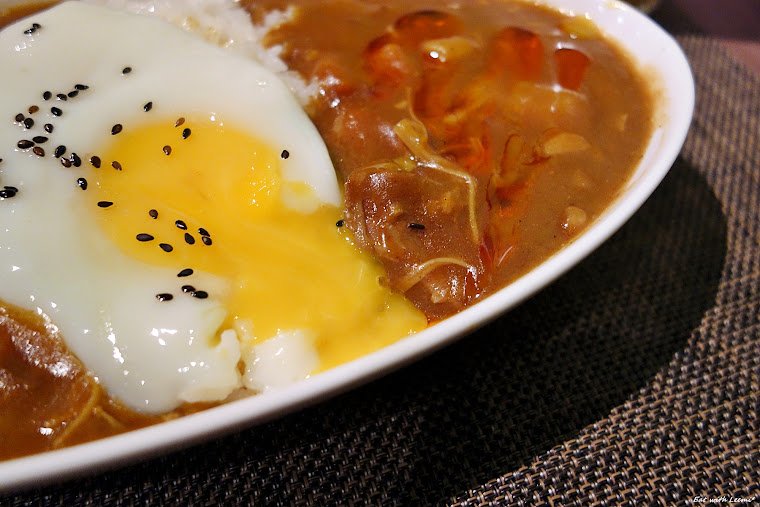 荷包蛋則是咖哩飯隨附的,不需另外加點,將半熟的蛋黃混著咖哩吃,多少調和了辣與鹹,變得稍微溫和一些,米飯的部分口感適中,份量不少,一盤吃完其實有不錯的飽足感,這價位以在台北吃一餐來說還不算太貴,而且外帶價錢又會更便宜些,也難怪店裡生意頗好。